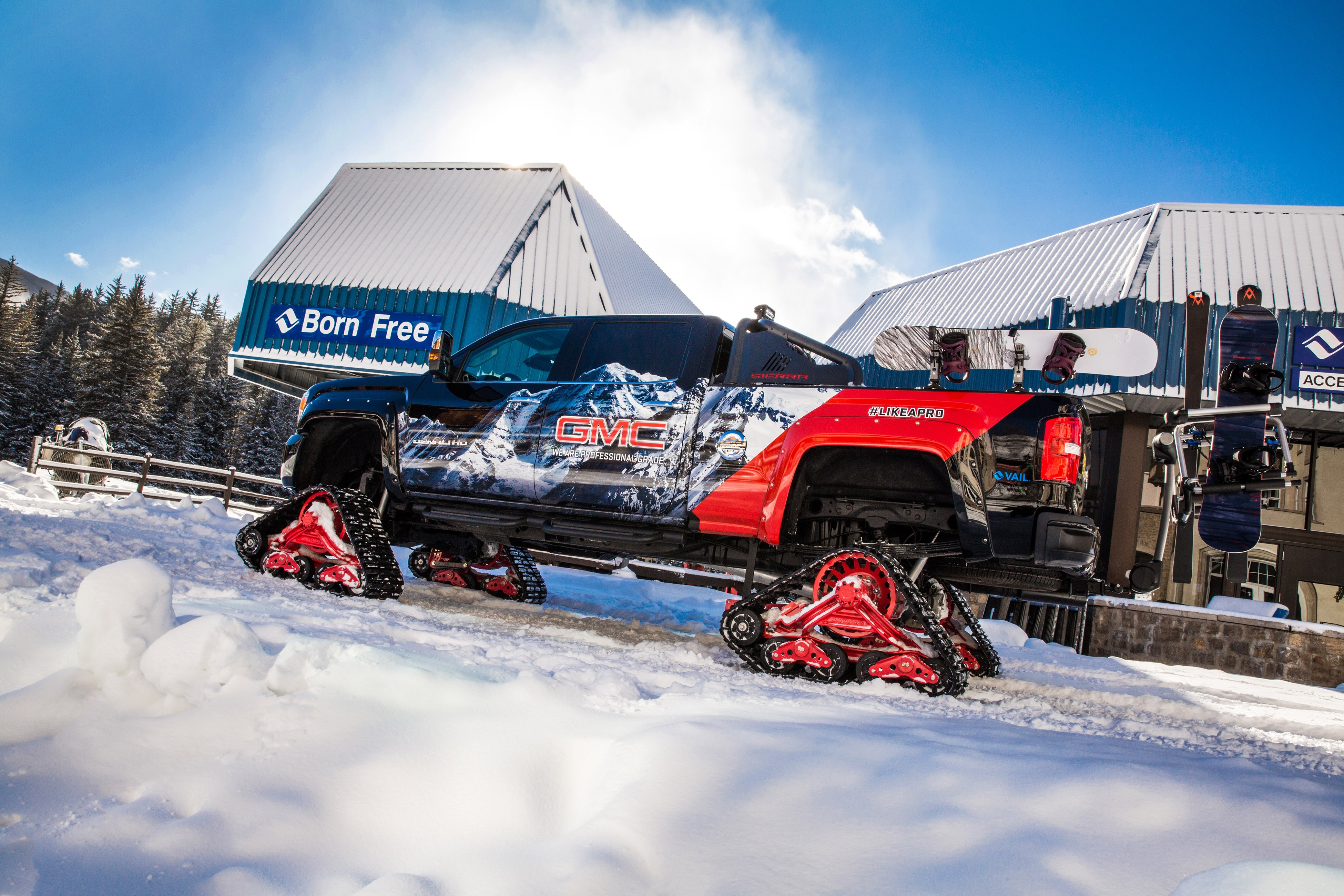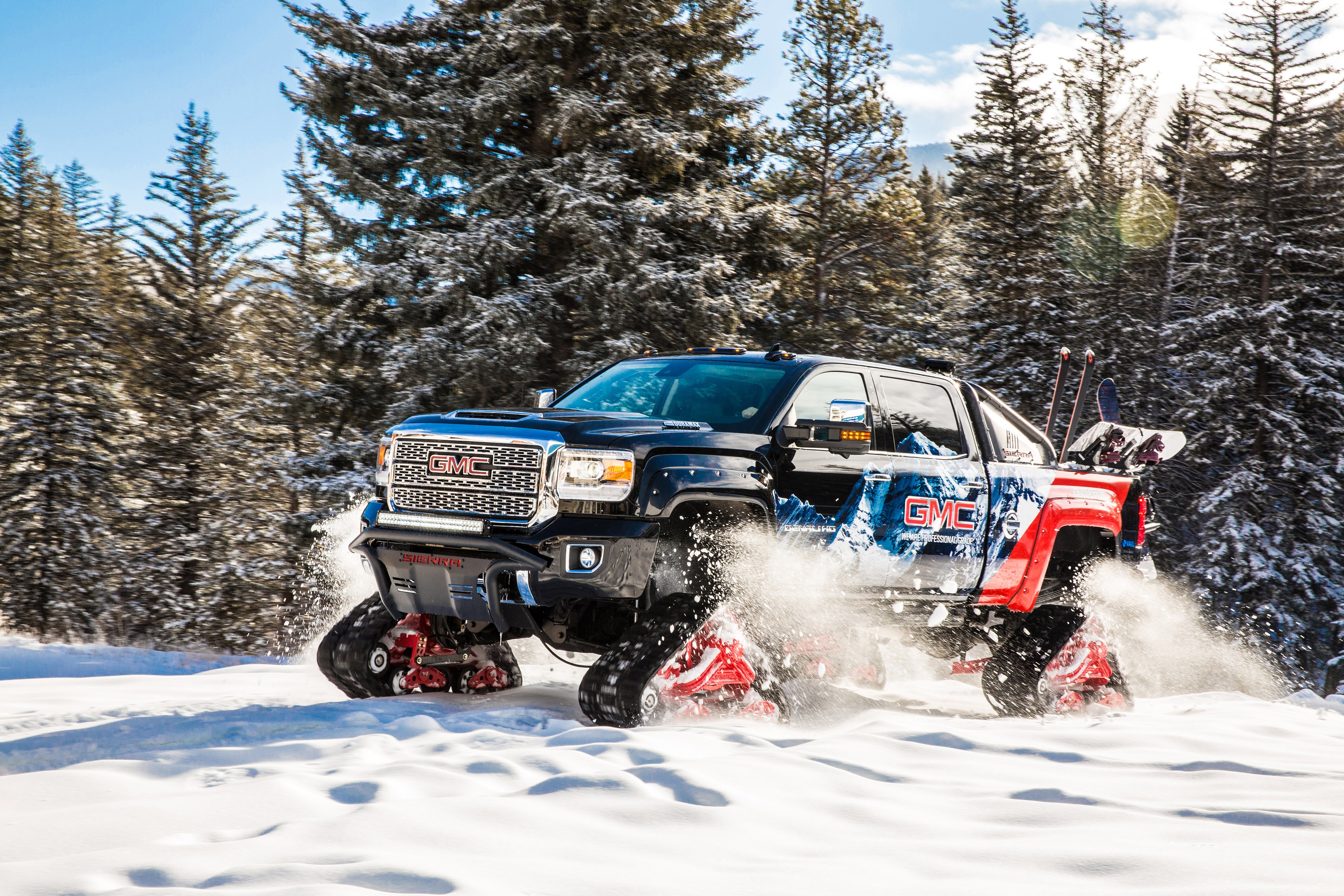 Apart from the Mattracks®, 150 Series Tracks with GMC Red finish, this Sierra 2500HD Denali 4WD Crew Cab gained a host of awesome GMC Accessories:
