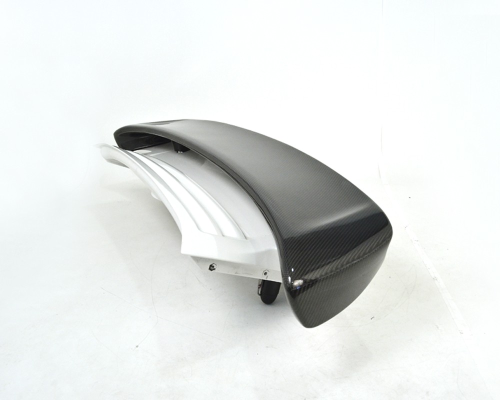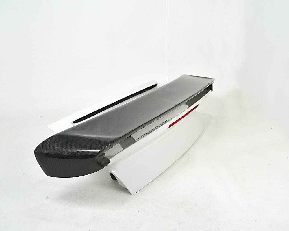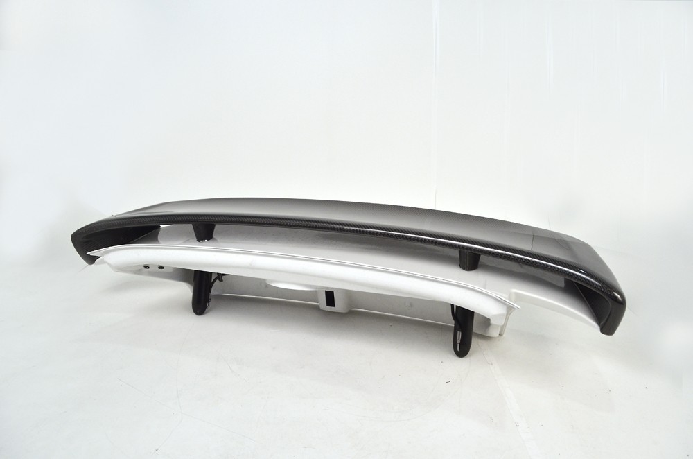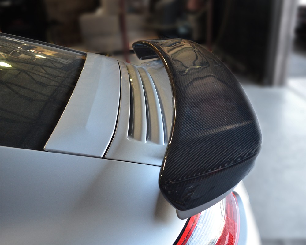 Agency Power offers this replacement rear wing carbon fiber wing blade that works with the factory hydraulic actuated rear spoiler. The full 2x2 carbon fiber weave blade is finished in a high gloss clear coat to match even the best OEM carbon parts. The addition of this wing gives the rear end a more aggressive look without the extensions found on our GT2 wing blade. The sides of the carbon wing form inwards to sit and hover just on the wing base. The wing still goes up and down as pictured. This look is similar to the factory 996TT X50 aero kit wing. No drilling or cutting required. Mounts to factory parts. Does require special tool from the dealer to remove the wing. Sold as wing blade only. Factory decklid not included. Fits all Porsche 997 Turbo 07-13.