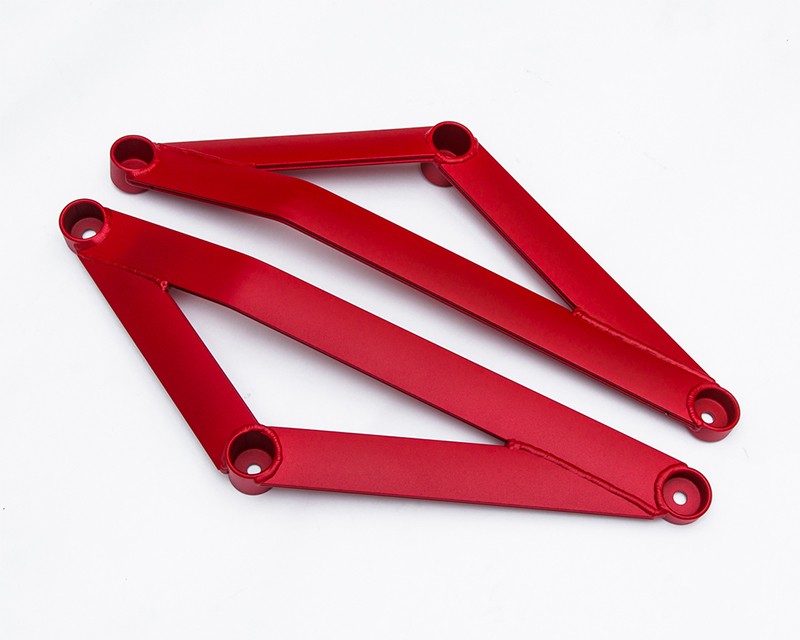 Agency Power Left / Right Mid Lower Frame braces are designed improve body rigidity and reduce chassis flex. Bolting each bar to the chassis reinforces the suspension structure preventing body flex which results in noticeably improved steering in high load driving situations. Traction during cornering is also improved by stiffening the chassis. Each component is made from lightweight Aluminum and is powder coated with a durable textured finish. Additional colors and custom power coating is available.