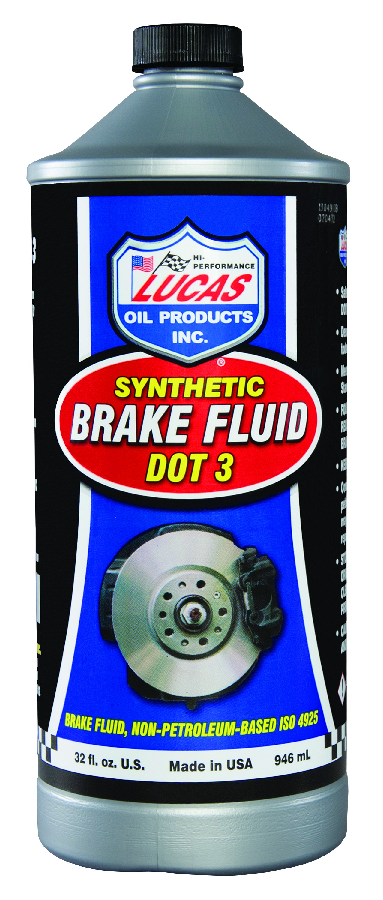 Lucas Synthetic Brake Fluid DOT 3 is a high quality blend of polyethylene glycol ethers and additives which meet or exceed the industry minimum dry boiling point of 401?F. It meets the Federal Motor Vehicle Safety Standard (FMVSS) No. 116 and SAE J1703 specifications. Lucas Synthetic Brake Fluid DOT 3 is recommended for use in both disc and drum brake system and clutch system where this type of product is called out for. Lucas Synthetic Brake Fluid DOT 3 is compatible with all brake system rubber components and other brake fluids. It prevents seal provides excellent lubricity. Available in 12 ounce and 32 ounce bottles.