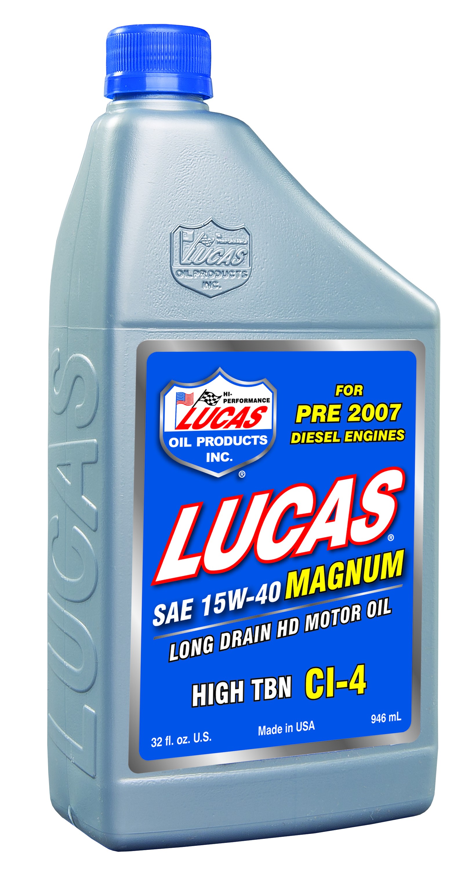 Lucas High TBN SAE 15W-40 Truck Oil is a blend of high quality base oils and an additive package that allows extended drain intervals and a much higher degree of protection from metal to metal contact. This product is excellent for gasoline engines. The user can expect the following: 1. EXTENDED DRAIN INTERVALS--UP TO TWICE AS LONG. After 20,000 miles, sample oil every 5,000 miles to determine maximum oil life for each particular engine. 2. ELIMINATION OF DRY STARTS. The exclusive additive package ensures a protective film on parts at all times. 3. LOWER OPERATING TEMPERATURES. Normal oil temperature will be lower but more importantly, the additive film in Lucas SAE 15W-40 will not rupture in an over-heating situation. 4. EXTENDED PROTECTION FROM FUEL DILUTION. The additive package is more resistant to break down from the solvents in diesel fuel than common additive packages found in regular 15W-40 blends. 5. HIGH DETERGENT ACTION. Motor oil is usually changed because it's contaminated with combustion by-products, not because it's worn out. The high detergent action of Lucas SAE 15W-40 allows up to twice as much contamination to be held in suspension and still have good lubrication qualities. 6. A HIGHER DEGREE OF LUBRICITY. The slicker the oil, the easier the engine starts and the easier it runs. 7. HIGHER OIL PRESSURE. This means more protection and more cooling. 8. LESS OIL CONSUMPTION. The low volatility of Lucas SAE 15W-40 Truck Oil makes it harder to burn. The thicker oil film makes it harder for the oil to get past the rings to the combustion chamber. 9. MORE PROTECTION FOR OLDER ENGINES. Common engine oils are formulated for the tolerances of new engines only. The extra additives coat the parts with a heavy film that compensates for the extra space between the moving parts in older engines.