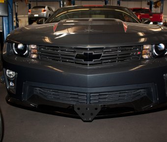 This bracket fits the 2012-2015 Camaro ZL1. Constructed of 5052 and 6061 aluminum, welded and anodized black, this bracket is built to last. Comes with a limited life time warranty. All parts required for installation included, however, tools are required. Requires 3 holes to be drilled on the underside of the vehicle. These holes are not visible and do not detract from the look of the vehicle. Made in USA