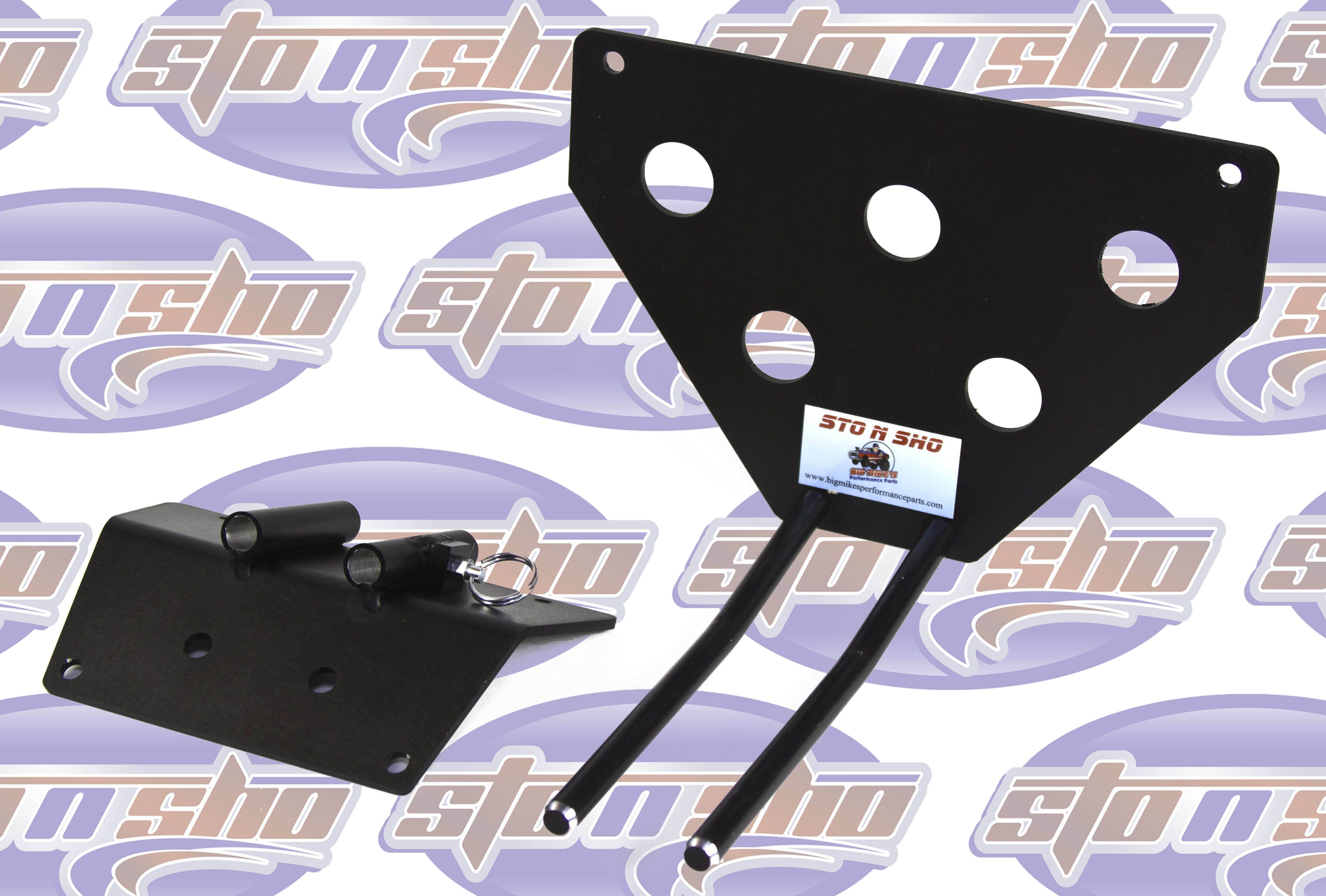 Big Mike’s Performance Parts, a California based business, is owned and operated by Mike McKinney, a retired disabled veteran of the United States Air Force. Mike had 2 goals in mind when he designed the patented (US9056590) STO N SHO® aftermarket quick release front license plate bracket. The first goal was to create a bracket for those customers who want to maintain the look and character of a high performance vehicle without doing permanent damage to the front of their vehicle. The second was to comply with state laws of those states requiring a front license plate to be displayed at all times. Mike designed the patented STO N SHO® aftermarket quick release front license plate bracket for high performance vehicle owners that want the ability to STO the front license plate from time to time to SHO the beauty and performance of modern muscle, performance and luxury cars on the road today.