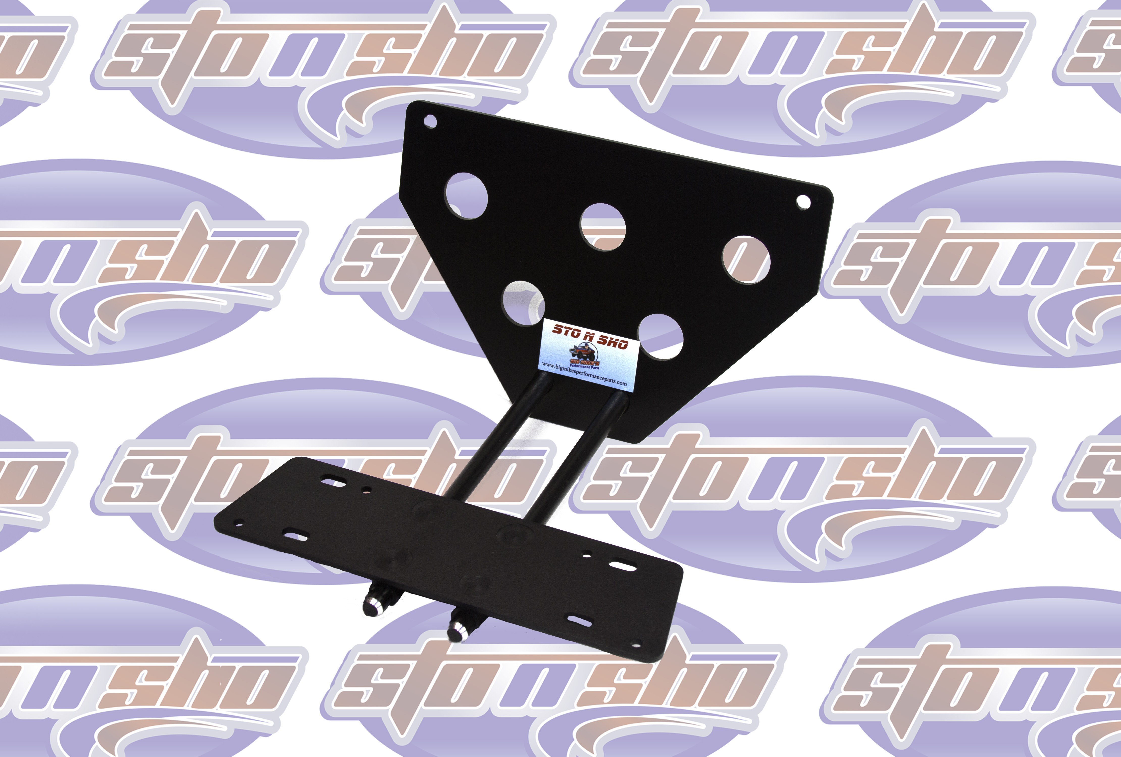 Big Mike’s Performance Parts, a California based business, is owned and operated by Mike McKinney, a retired disabled veteran of the United States Air Force. Mike had 2 goals in mind when he designed the patented (US9056590) STO N SHO® aftermarket quick release front license plate bracket. The first goal was to create a bracket for those customers who want to maintain the look and character of a high performance vehicle without doing permanent damage to the front of their vehicle. The second was to comply with state laws of those states requiring a front license plate to be displayed at all times. Mike designed the patented STO N SHO® aftermarket quick release front license plate bracket for high performance vehicle owners that want the ability to STO the front license plate from time to time to SHO the beauty and performance of modern muscle, performance and luxury cars on the road today.