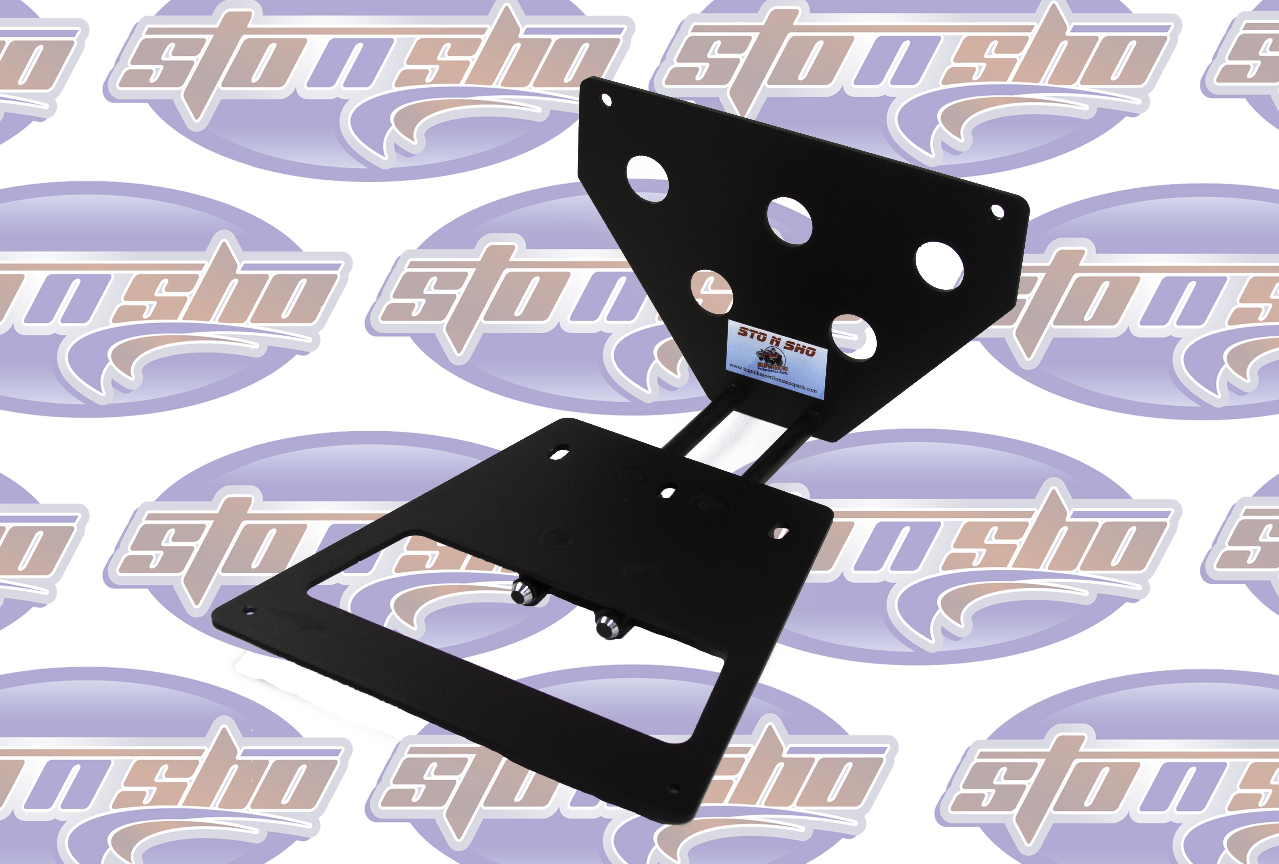 Big Mike’s Performance Parts, a California based business, is owned and operated by Mike McKinney, a retired disabled veteran of the United States Air Force. Mike had 2 goals in mind when he designed the patented (US9056590) STO N SHO® aftermarket quick release front license plate bracket. The first goal was to create a bracket for those customers who want to maintain the look and character of a high performance vehicle without doing permanent damage to the front of their vehicle. The second was to comply with state laws of those states requiring a front license plate to be displayed at all times. Mike designed the patented STO N SHO® aftermarket quick release front license plate bracket for high performance vehicle owners that want the ability to STO the front license plate from time to time to SHO the beauty and performance of modern muscle, performance and luxury cars on the road today.