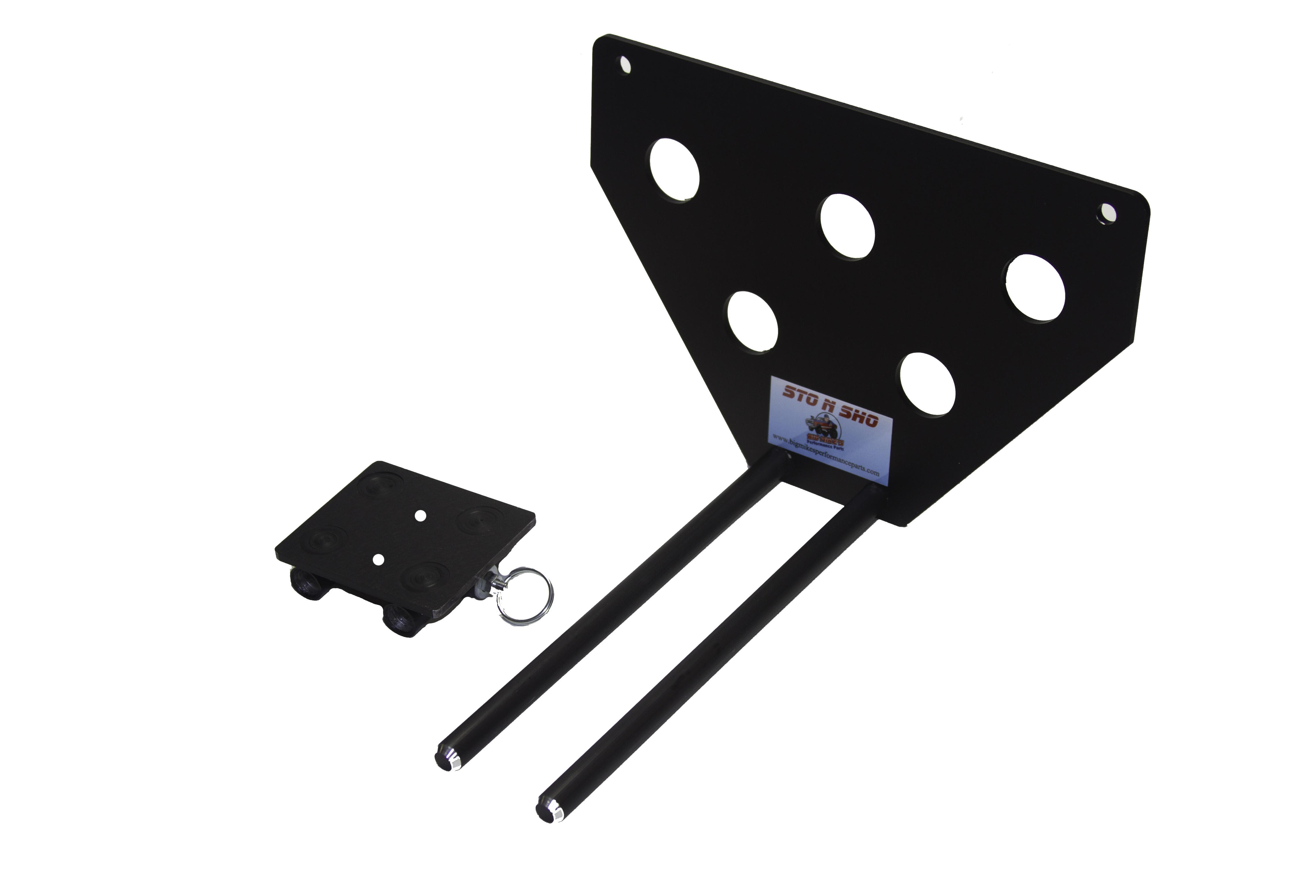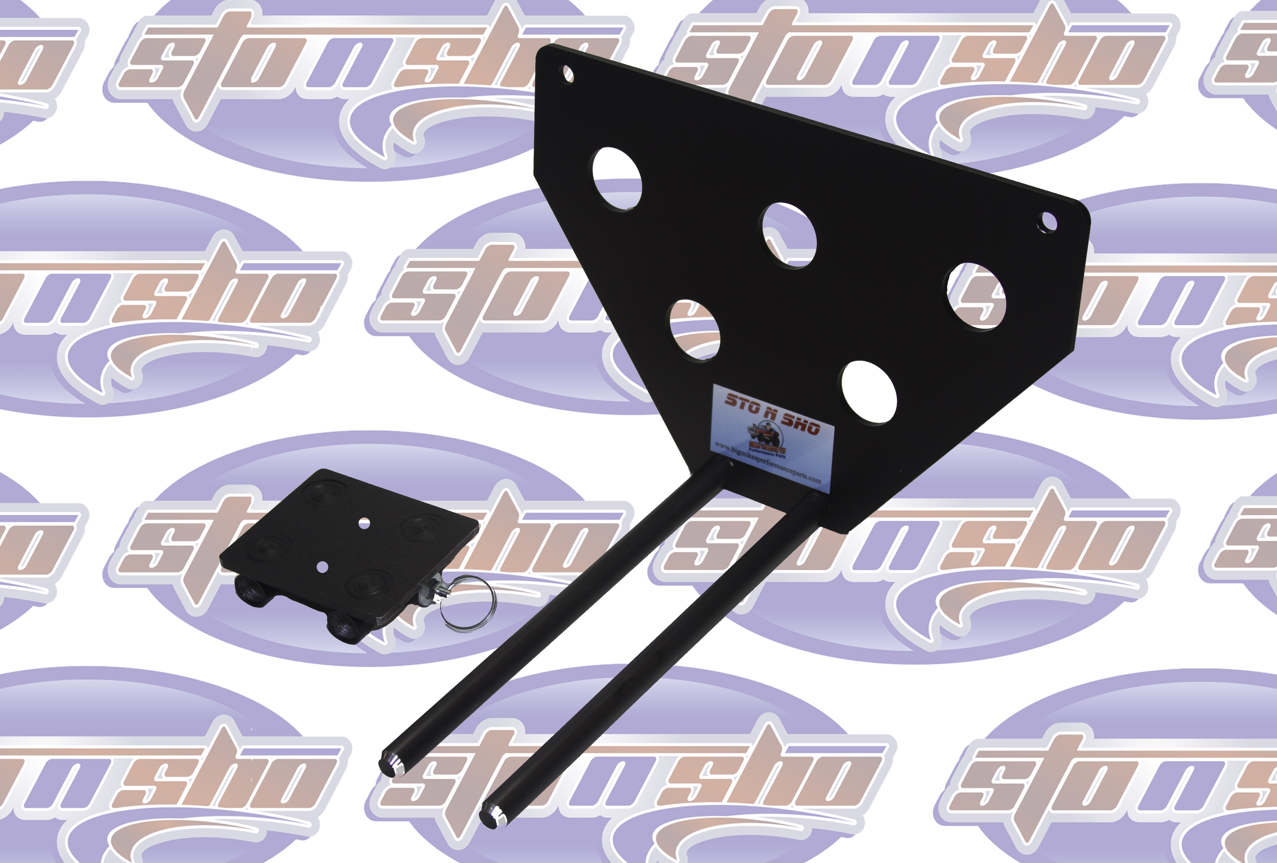 Big Mike’s Performance Parts, a California based business, is owned and operated by Mike McKinney, a retired disabled veteran of the United States Air Force. Mike had 2 goals in mind when he designed the patented (US9056590) STO N SHO® aftermarket quick release front license plate bracket. The first goal was to create a bracket for those customers who want to maintain the look and character of a high performance vehicle without doing permanent damage to the front of their vehicle. The second was to comply with state laws of those states requiring a front license plate to be displayed at all times. Mike designed the patented STO N SHO® aftermarket quick release front license plate bracket for high performance vehicle owners that want the ability to STO the front license plate from time to time to SHO the beauty and performance of modern muscle, performance and luxury cars on the road today.