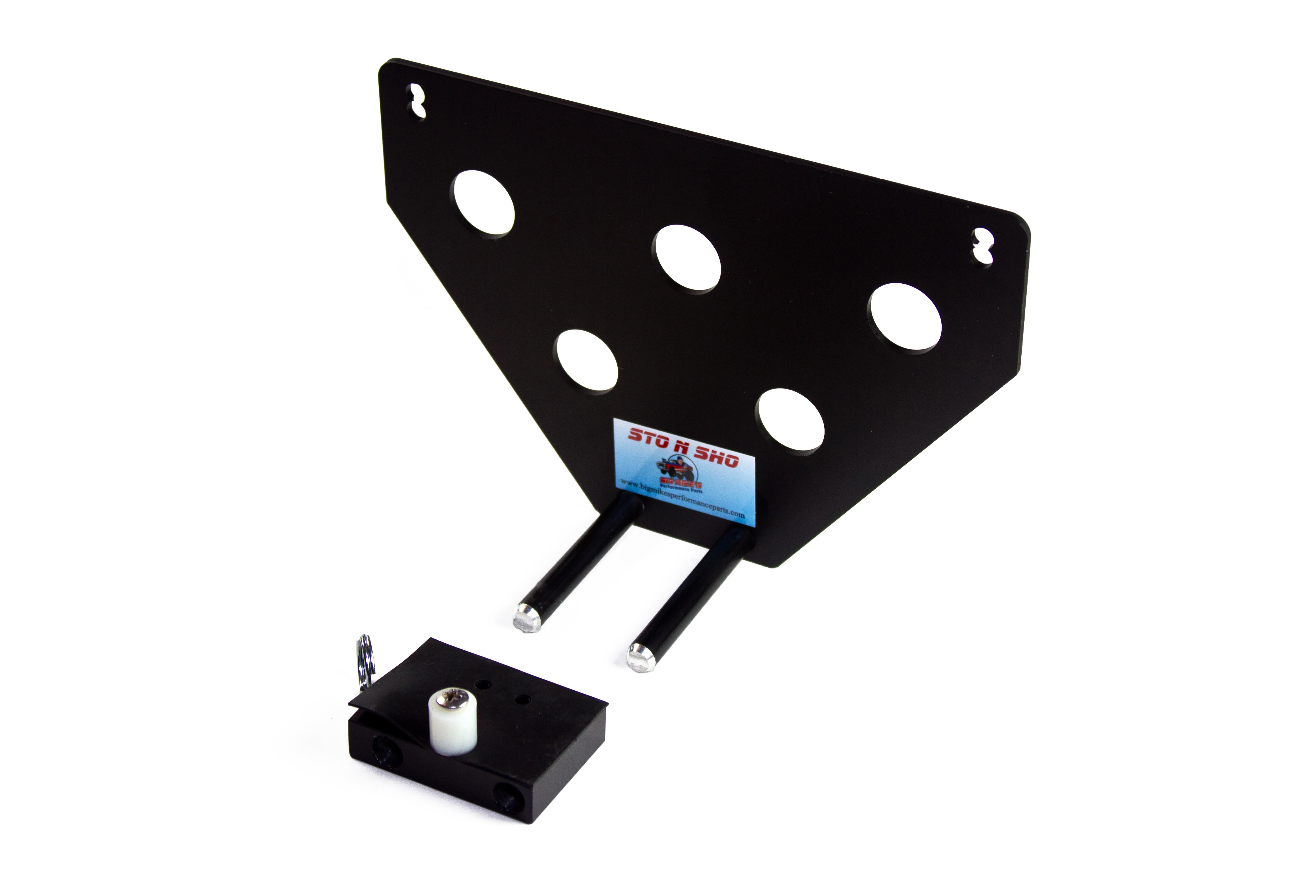 Big Mike’s Performance Parts, a California based business, is owned and operated by Mike McKinney, a retired disabled veteran of the United States Air Force. Mike had 2 goals in mind when he designed the patented (US9056590) STO N SHO® aftermarket quick release front license plate bracket. The first goal was to create a bracket for those customers who want to maintain the look and character of a high performance vehicle without doing permanent damage to the front of their vehicle. The second was to comply with state laws of those states requiring a front license plate to be displayed at all times. Mike designed the patented STO N SHO® aftermarket quick release front license plate bracket for high performance vehicle owners that want the ability to STO the front license plate from time to time to SHO the beauty and performance of modern muscle, performance and luxury cars on the road today.