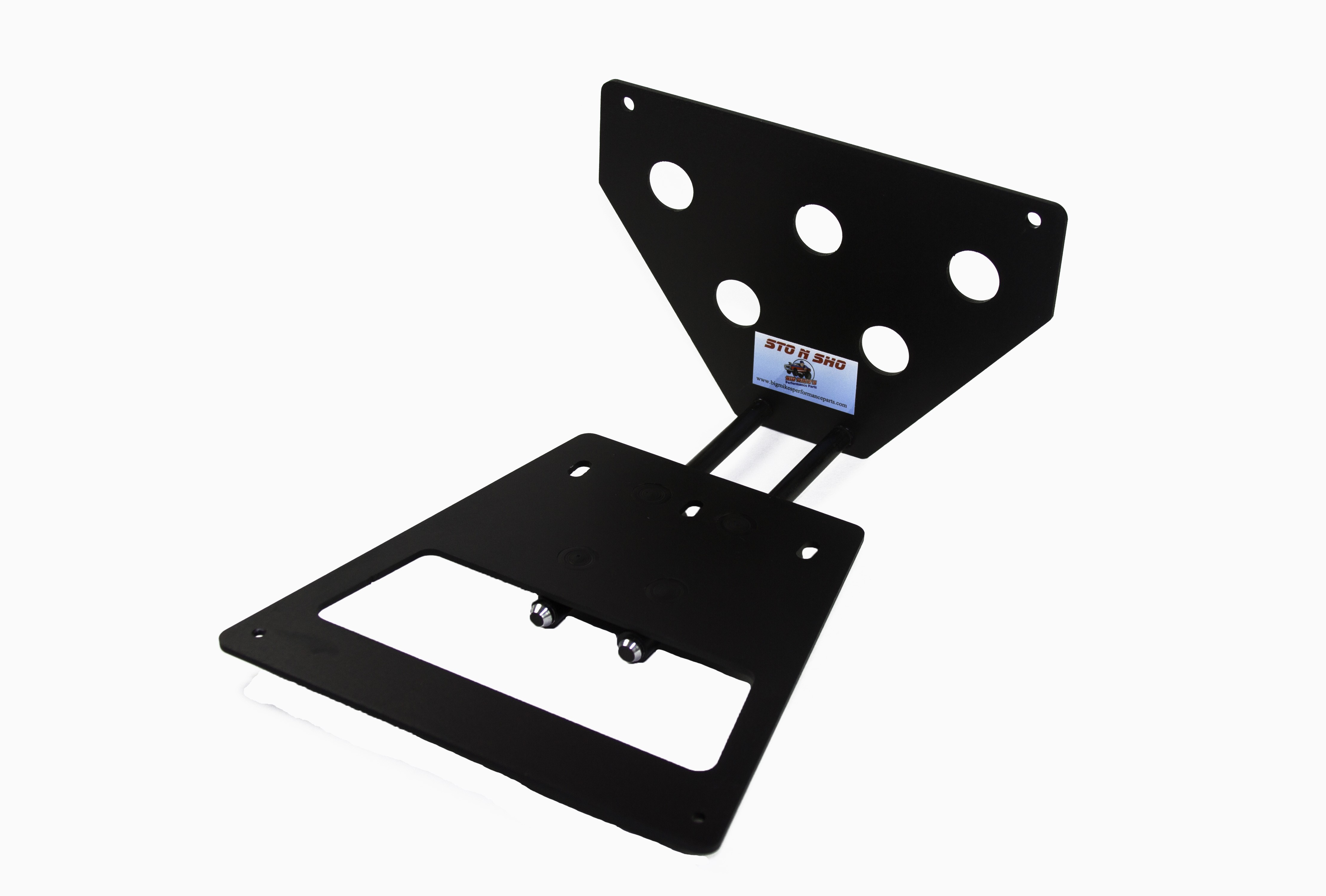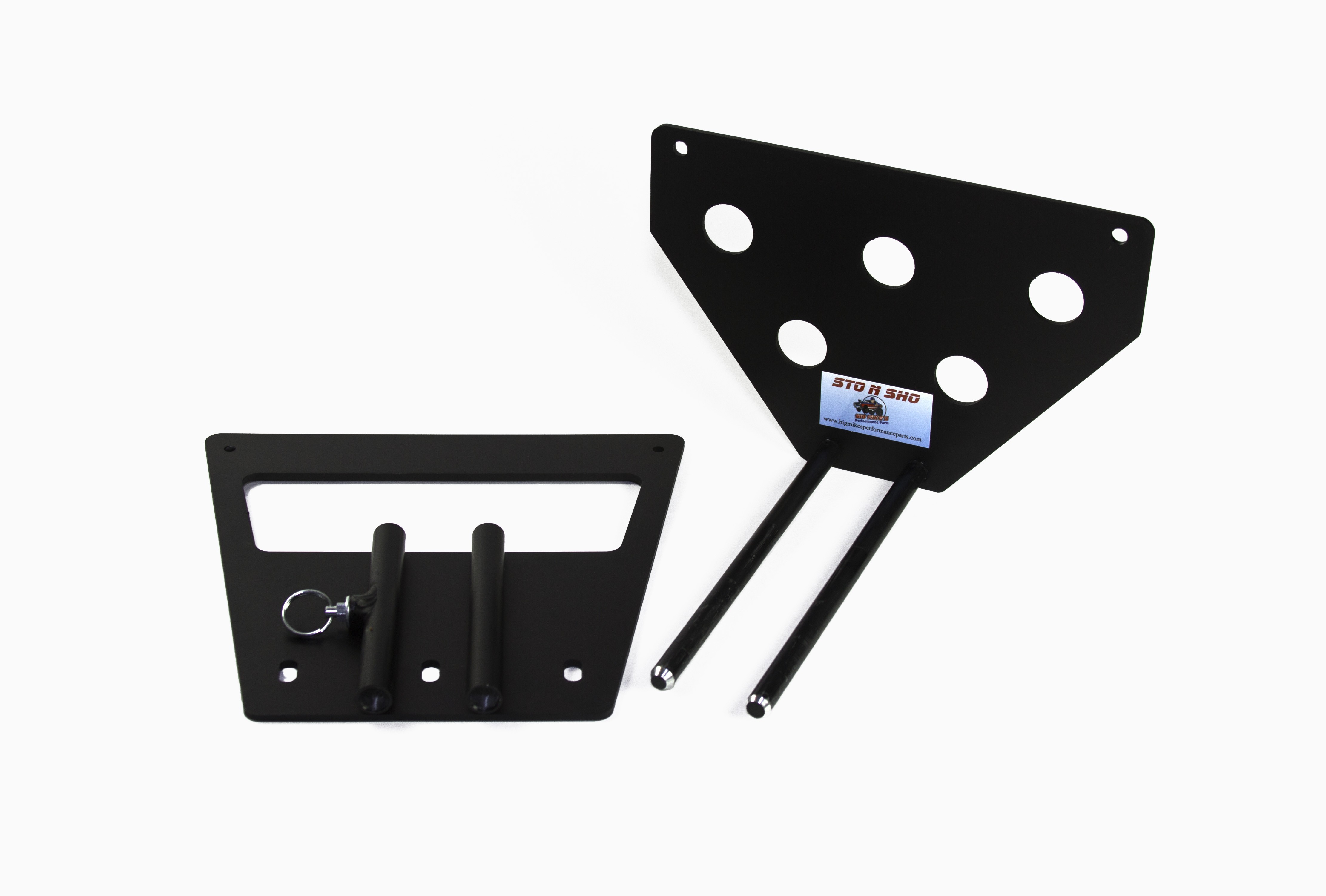 Big Mike’s Performance Parts, a California based business, is owned and operated by Mike McKinney, a retired disabled veteran of the United States Air Force. Mike had 2 goals in mind when he designed the patented (US9056590) STO N SHO® aftermarket quick release front license plate bracket. The first goal was to create a bracket for those customers who want to maintain the look and character of a high performance vehicle without doing permanent damage to the front of their vehicle. The second was to comply with state laws of those states requiring a front license plate to be displayed at all times. Mike designed the patented STO N SHO® aftermarket quick release front license plate bracket for high performance vehicle owners that want the ability to STO the front license plate from time to time to SHO the beauty and performance of modern muscle, performance and luxury cars on the road today.